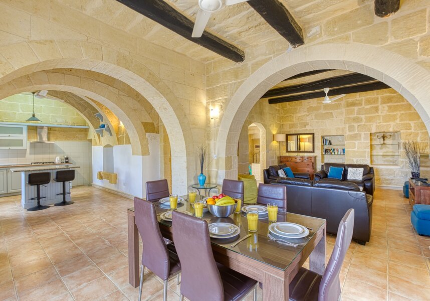 Girardu, a lovely, traditional gem of a Gozitan farmhouse is located on the outskirts of the capital Victoria within walking distance of the shops, restaurants, banks and places of interest such as the citadel, the fabulous walled city with 360 views of the Island from its ramparts. All the sights of the Island are easily accessed from here either by car or bus and there is on street parking.