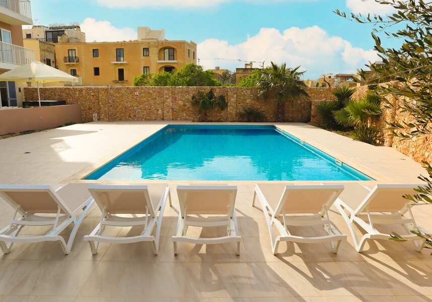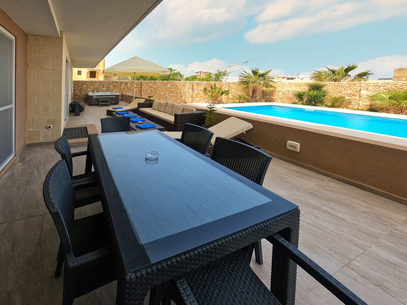 Unique find in popular Xaghra. Superb contemporary villa, private jacuzzi terrace and communal pool