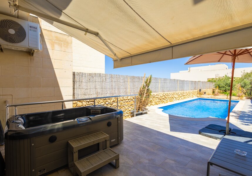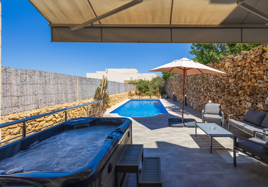Adorable contemporary villa with style, chic, Xaghra. Luxurious outside pool, jacuzzi, olive garden.